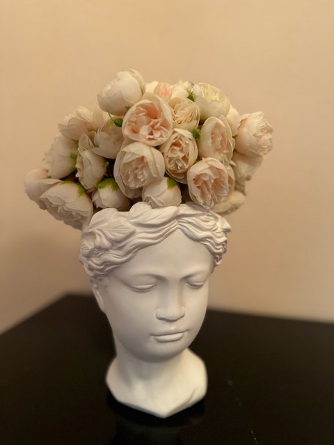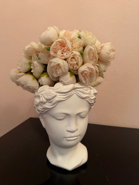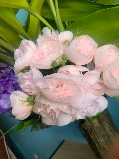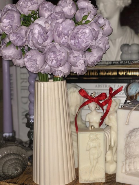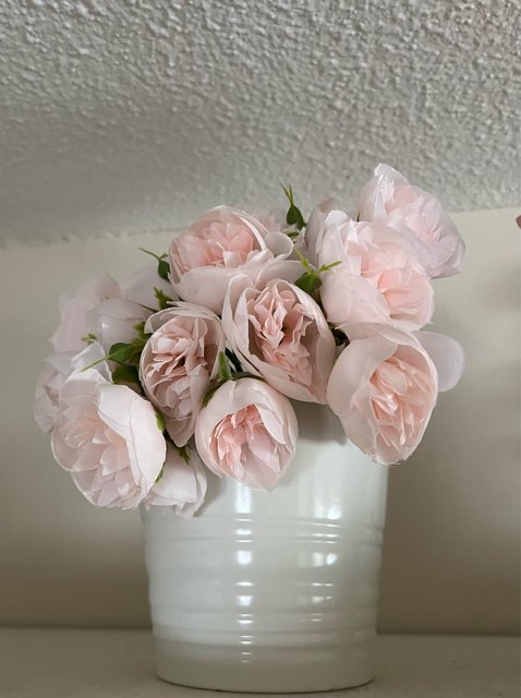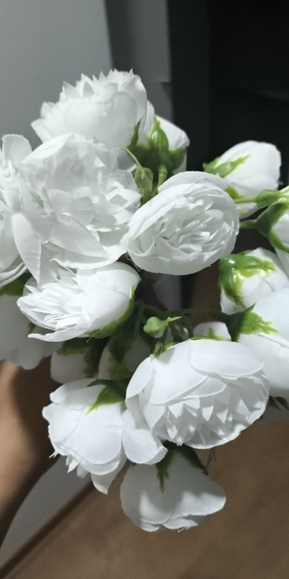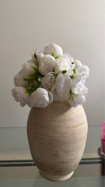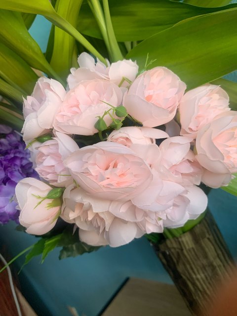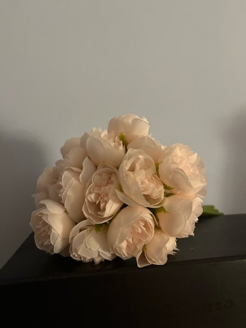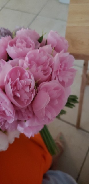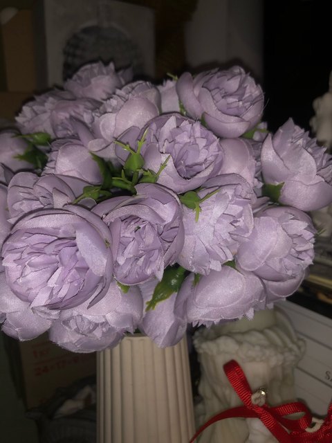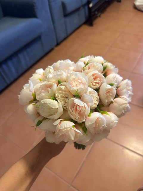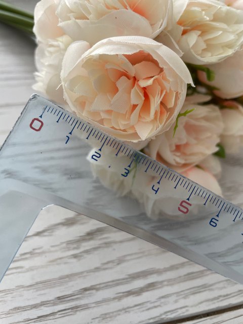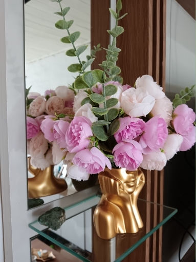Joli bouquet de pivoines artificielles sur tiges. Arrivées un peu écrasées mais se remettent facilement en place.
